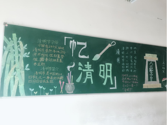 本次活動得到了各班老師、學(xué)生的積極響應(yīng),孩子們在老師的指導(dǎo)下,查找資料、編排版本、設(shè)計插圖,大家忙得不亦樂乎,通過大家的努力,一塊塊主題鮮明、內(nèi)容充實、設(shè)計新穎、圖文并茂的黑板報展現(xiàn)在大家眼前。板報內(nèi)容上,既有清明習俗的介紹,又有描述清明的經(jīng)典作品,也有文明祭祀方式的介紹,更有對革命先烈的深切懷念。