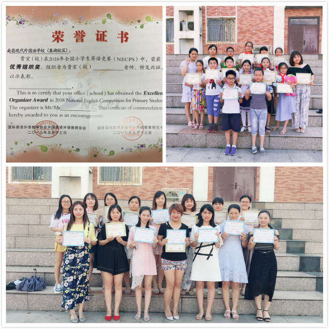 本次競賽,南昌現(xiàn)代外國語象湖學(xué)校經(jīng)過初賽選拔,共69名學(xué)生進入決賽。從初賽到?jīng)Q賽短短一個月的時間,由英語教研組長負責組織有針對性地進行輔導(dǎo),老師之間經(jīng)常在一起相互交流輔導(dǎo)方法,商討難題,并做到每天跟家長溝通與交流,讓家長配合督促孩子在家完成復(fù)習(xí)任務(wù)。功夫不負有心人,在決賽中,有九名學(xué)生獲得了國家級獎;有18名學(xué)生獲得市級一等獎;35名學(xué)生獲得市級二等獎;8名教師獲得“全國優(yōu)秀指導(dǎo)教師”光榮稱號;學(xué)校榮獲全國小學(xué)生英語競賽(NECPS)優(yōu)秀組織獎。本次比賽獲得優(yōu)異成績,是對參賽學(xué)生刻苦學(xué)習(xí)的肯定,是輔導(dǎo)老師辛勤指導(dǎo)的回報。