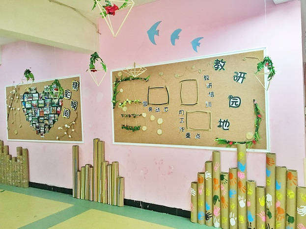 隨后,各班教師根據(jù)幼兒年齡特點、教學(xué)主題內(nèi)容,結(jié)合有限的空間,大膽構(gòu)思、精心創(chuàng)設(shè),利用豐富多樣的材料,創(chuàng)設(shè)出了各具特色的室內(nèi)環(huán)境、形式各異的主題墻、溫馨的家園互動欄及幼兒感興趣的特色功能室和彰顯韻味的走廊文化等。