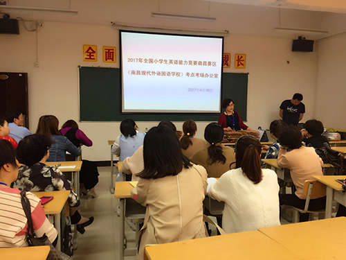 4月16日,2017年全國小學(xué)生英語能力競賽(NECPS)初賽在南昌現(xiàn)代外國語學(xué)校(象湖校區(qū))舉行,作為本次競賽的考點(diǎn)之一,我校高度重視此項(xiàng)工作,從監(jiān)考教師的配備再到橫幅及考場(chǎng)指示牌、考點(diǎn)分布圖的溫馨提示,我校都做好了充分的準(zhǔn)備。考前,學(xué)校組織全體考務(wù)人員進(jìn)行了培訓(xùn)。在各部門的通力配合下,各考場(chǎng)布置嚴(yán)肅規(guī)范,考場(chǎng)秩序井然,很好地完成了考場(chǎng)布置等工作。
