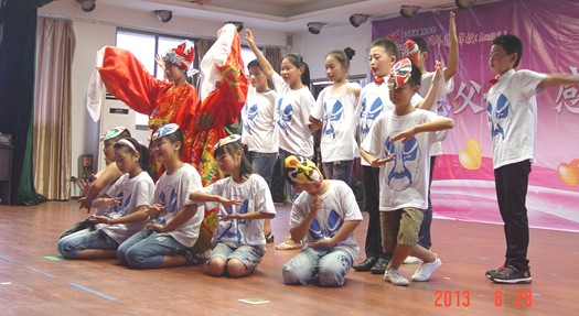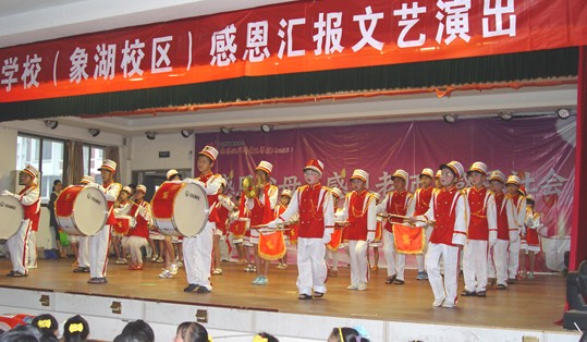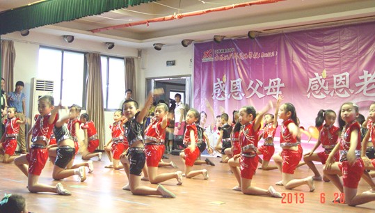 此次文藝演出圍繞“感恩”主題,頌揚了父母、老師及社會對孩子的培養(yǎng)之情,同學(xué)們以豐富多彩的文藝節(jié)目展現(xiàn)了校園生活,反映了他們的快樂和感恩之情。舞臺背景上醒目的標識:“感恩父母、感恩老師、感恩社會”及2個敬禮的少先隊員的畫面,構(gòu)建了會場濃濃的感恩氛圍。開場時嘹亮的鼓號聲奏響了孩子們的前進誓言,拉開了表演的序幕。隨后,精彩的節(jié)目一一登場,《大家一起來》、《印度天使》是小學(xué)一、二年級小朋友們帶來的節(jié)目,他們年紀雖小,但舞蹈水平不低,整齊劃一的動作、天真無邪的笑容,不禁讓人心生憐愛;《英語歌曲串燒》、《中華武術(shù)魂》、《戲曲聯(lián)唱》不僅給大家?guī)眢@喜,也從不同的側(cè)面反映出了校園文化生活的豐富多彩。令人忍俊不禁的是三(1)班的《江南style》,胖胖的“鳥叔”一上場,臺上臺下都響起了一片歡呼聲,將演出推向了高潮!