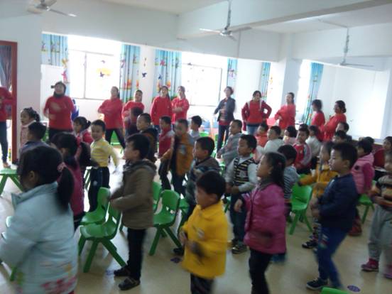 觀摩活動(dòng)上,兩所幼兒園的教師紛紛登臺(tái)亮相,展示了幼兒園音樂律動(dòng)游戲課程的新形式、新理念、新方法。音樂律動(dòng)是幼兒園教學(xué)活動(dòng)不可缺少的環(huán)節(jié)和幼兒常規(guī)教育行之有效的手段之一。自辦園以來,迪斯尼和園外園幼兒園每學(xué)期都會(huì)組織教師開展幼兒音樂律動(dòng)課程教研活動(dòng),并在每次活動(dòng)之后進(jìn)行教學(xué)反思。通過多年教研活動(dòng)的總結(jié)和反思,此次的幼音樂律動(dòng)觀摩活動(dòng)又得到了提煉和升華,老師們不僅把唱歌、舞蹈、律動(dòng)、音樂游戲、音樂欣賞等音樂形式滲透到幼兒的常規(guī)訓(xùn)練,還增加了師生互動(dòng)環(huán)節(jié),這樣不僅提高了幼兒的音樂素養(yǎng)和音樂感受能力,還增進(jìn)了老師和幼兒之間的感情。
